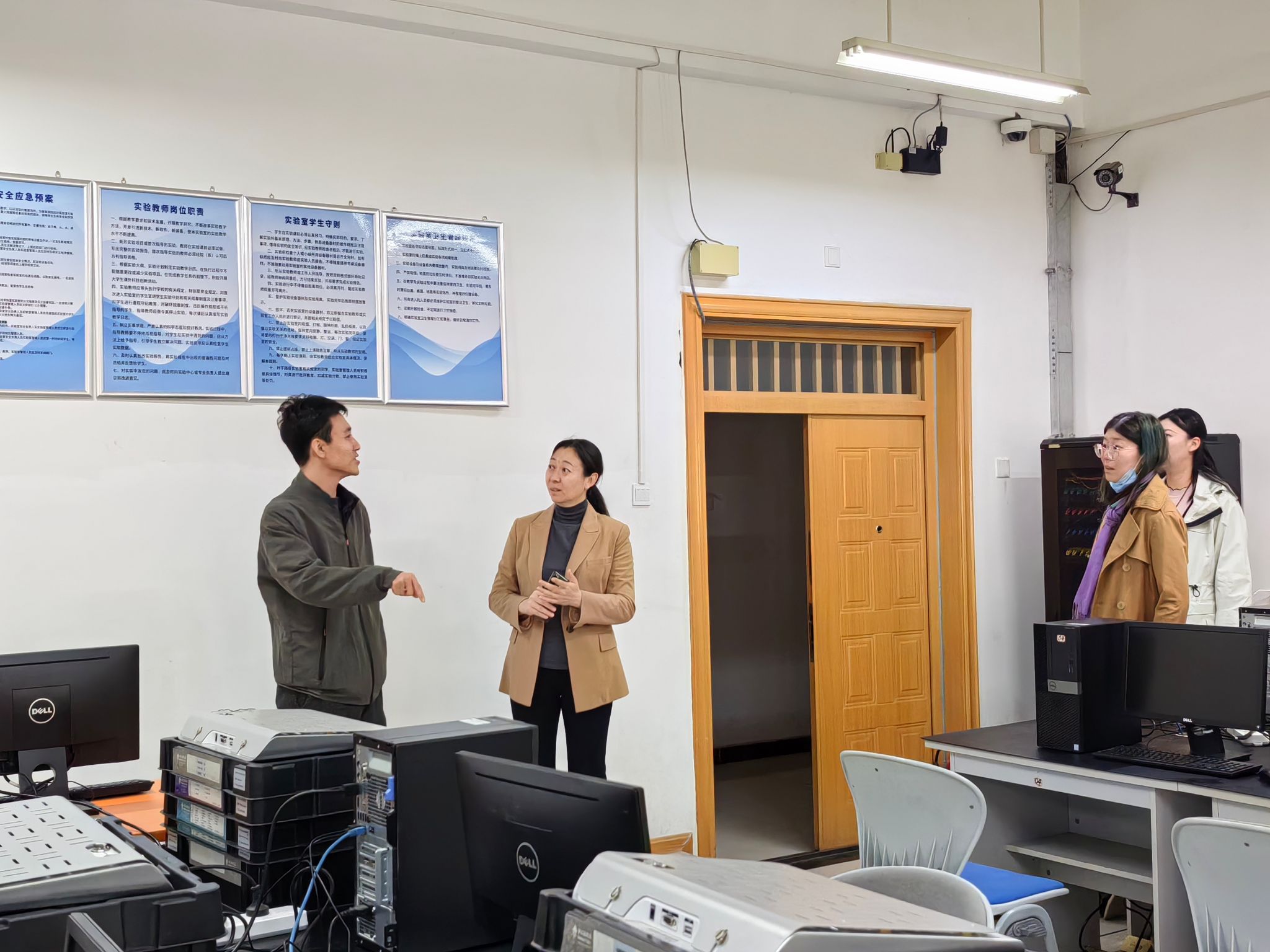 对学院实验室、办公室、学生宿舍等重点区域进行了安全隐患排查,学院党总支书记张晓凤带队,班子成员及相关工作人员共同参加。