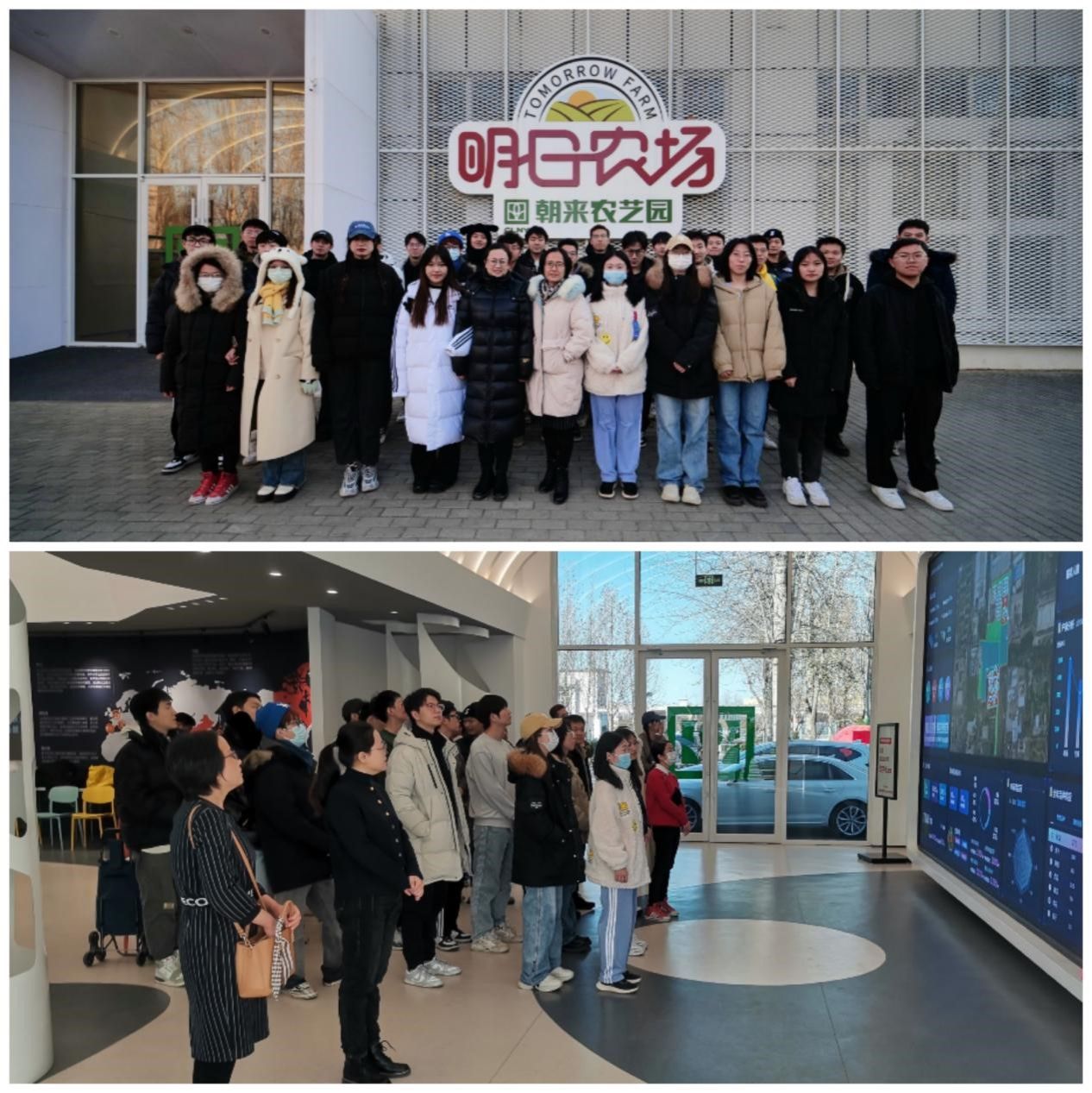 2023年12月,全体成员前往北京朝来农艺园参观学习。在讲解员的带领下同学们参观了水培插苗、日光温室等功能区域,实地了解了园区内人工智能设施的生产控制策略与智能调控模式,对现代化数字农业有了更加深入的认识。通过此次参观学习,同学们对水肥循环装置、智能滴灌装置、湿度、温度调节装置等农业设施表现出浓厚的兴趣,同学们在今后的科研中将深入设施农业领域开展实验研究,为我国设施农业的发展贡献一份力量。