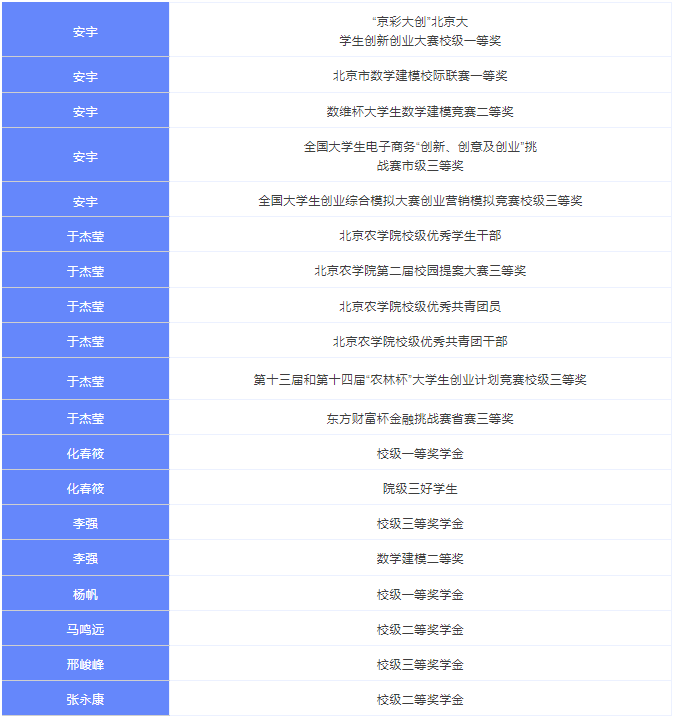 本班在2020--2021学年和2021-2022学年获得北京农学院校级先进班集体。