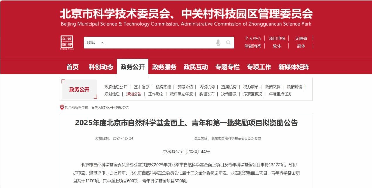 北京市自然科学基金项目竞争激烈,中科院在京机构和部属在京院校等优势单位均可申报。2025年度面上及青年科学基金项目申请期内,共接收申请项目13272项,通过初步审查13135项(其中面上项目7724项、青年科学基金项目5411项),决定拟资助面上项目、青年科学基金项目共1100项(其中面上项目600项、青年科学基金项目500项),面上项目资助率低于7.77%。