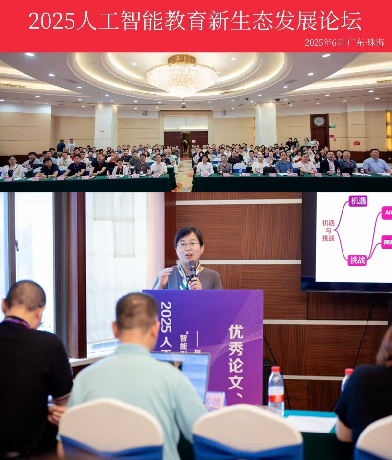 2025年6月6日至 8 日,由全国高等学校计算机教育研究会、《计算机教育》杂志社共同主办,清华大学出版社协办的“2025 人工智能教育新生态发展论坛”在珠海举行。本次论坛以“智能引领,教育未来——探索人工智能在教育中的创新应用与实践”为主题,吸引了全国多所院校的专家学者,共同研讨人工智能教育新生态建设、教学改革实践及教育大模型应用等核心议题。