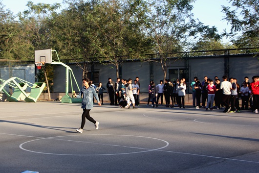 活动开始前,同学们早早来到现场并完成了分组,在大家的期待中活动正式开始。篮球场上,活动如火如荼的进行着,成员们的热情驱散了秋日里的丝丝凉意,笑容洋溢在每个人的脸上。“十人九足”、“传呼啦圈”等活动中同学们团结协作,互帮互助,力求将每个项目做到圆满。素拓的最后一个项目是“击鼓传球”,全体成员的共同参与让活动现场热度达到最高峰,大家在各种项目中体验着团结一致的力量,体验着共同协作的成就感。