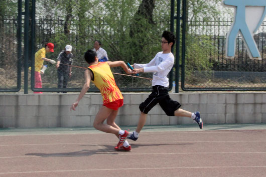 在北京农学院第33届运动会团体比赛中,计算机与信息工程学院的运动员们在男子教职工4*100米接力赛,学生三分钟长绳八字穿梭、八人龙卷风跑、男女4*100米、4*400米接力赛中均取得了可喜的成绩。