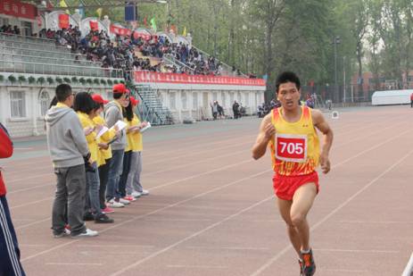在下午16:00的男子1500米决赛中,胡仁昭同学保持了自己在这个项目上新生运动会时第一名的优异成绩,对于这么优异的成绩,胡仁昭表示,这和自己平时的训练是分不开的,热爱跑步,为学院争光的精神,给了他动力,使他在赛场上遥遥领先。