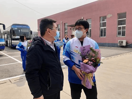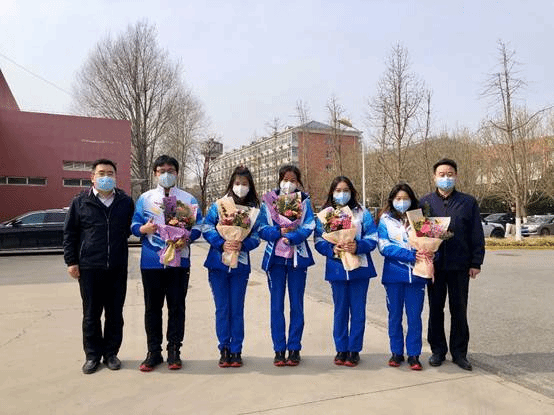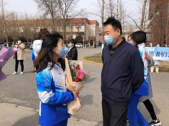 3月16日中午,计信学院首批冬奥志愿者返校。学院党总支书记韩宝平,副书记、副院长刘京威,团委书记宁宁迎接志愿者凯旋。