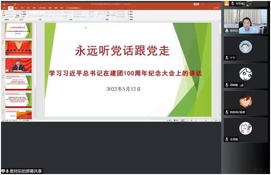 易帅东首先传达了习近平总书记在庆祝中国共产主义青年团成立100周年大会上的讲话精神,他号召大家要争做理想远大、信念坚定的模范,争做刻苦学习、锐意创新的模范,争做敢于斗争、善于斗争的模范,争做艰苦奋斗、无私奉献的模范,争做崇德向善,严守纪律的模范。