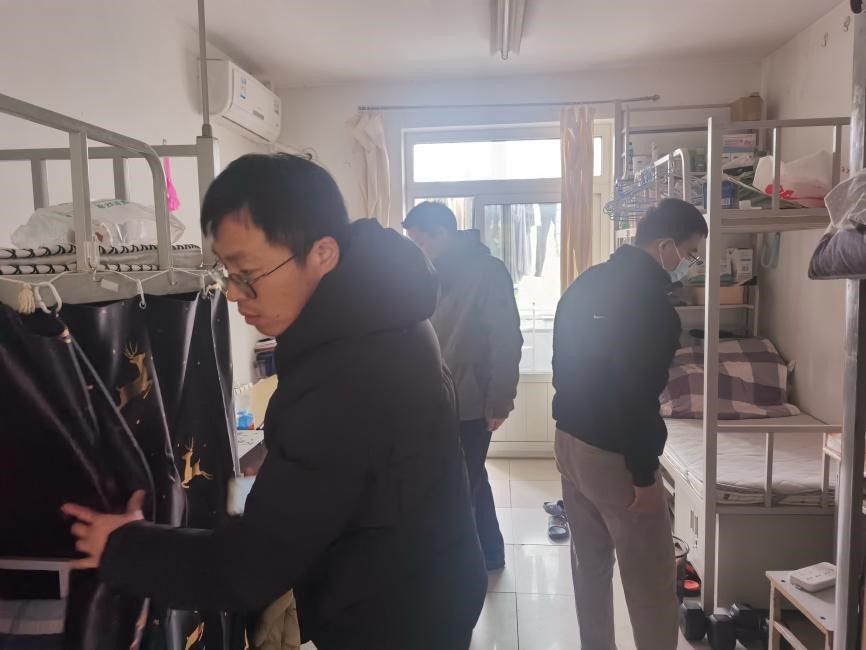 开展寒假前宿舍安全检查。学生工作负责人王成,辅导员宁宁、焦鹏,班主任樊正强、吴志跃参加检查。