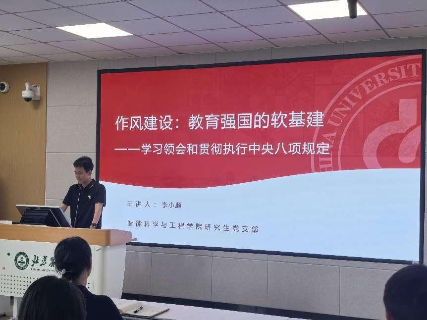 研究生党支部书记李小顺以作风建设、教育强国的软基建为切入点,探讨了在教育领域和科研领域中党员需坚守的行为准则。他着重强调了研究生党员在学术研究中必须严格保证学术诚信,坚决杜绝滥用AI技术等可能导致学术作假、资源浪费的行为。任何弄虚作假的行为都将对个人、对集体乃至整个学术生态造成严重的负面影响,研究生党员应当以身作则,带头遵守学术规范。