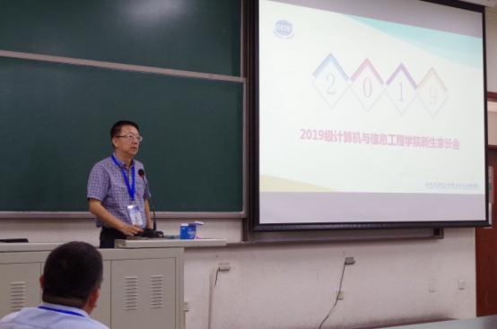上午10点半,计信学院在教学楼B座302召开了2019级新生家长会,学院全体领导班子参加会议以及2019级新生家长参加会议,会议由党总支副书记、副院长刘京威主持。会上,党总支书记韩宝平、院长徐践分别就学院的基本情况、本科教育教学工作、学生工作进行了介绍,并对家长们关心的问题进行了解答,随后副书记、副院长刘京威对学生的日常管理和服务,事关学生今后的学习和生活等事宜进行了详细的讲解。