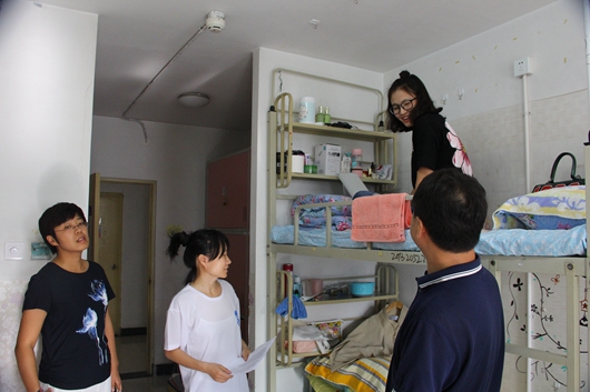 领导到宿舍与新生进行了亲切交流,悉心询问了同学们所遇到的问题,鼓励同学们更好的融入集体、适应新的学习生活。