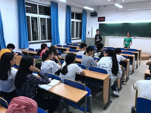 在一个班的班会上,活动伊始,班助孙鑫学长和庞文君学姐让每位同学发表自己对已经开始了的大学生活和学习的感想和期望,同学们认真发表自己的感想和对未来大学生活的美好期待。