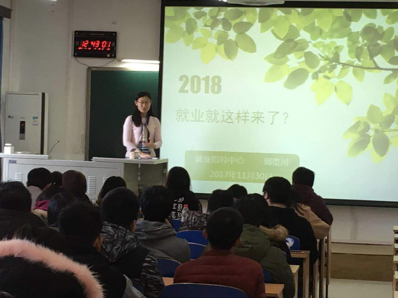 会上,郭贵川老师首先结合国家的宏观政策与京津冀一体化布局分析了目前的就业形势,再通过往年毕业生就业去向及计算机类专业的特点分析了目前同学们重点的就业方向。之后,郭老师详细为大家讲解了与就业相关的流程和重要表格,最后,她从用人单位、学校和社会等几方面为同学们介绍了很多实用的就业技巧。