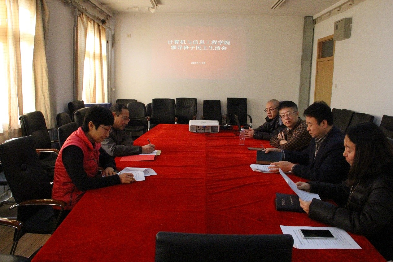 按照《北京农学院2016年度处级党员领导干部民主生活会方案》要求,2017年1月19日上午,计算机与信息工程学院在2号办公楼4015召开学院班子民主生活会,学校副校长张铁强、计算机与信息工程学院全体领导班子成员参加会议。会议由学院党总支书记韩宝平主持。