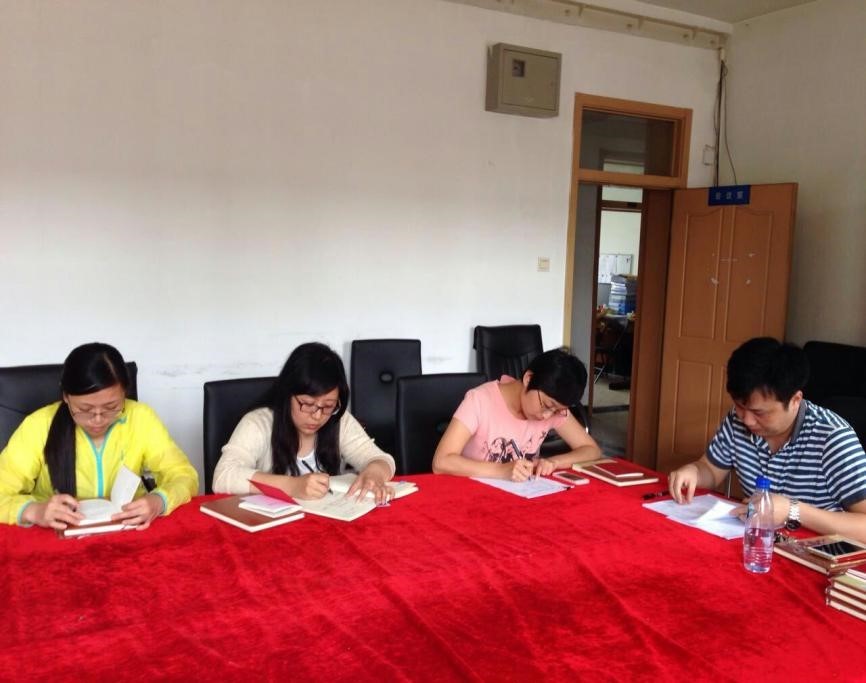 最后,支部全体党员一起重温《中国共产党党章》。党支部书记兰彬同志带领全体党员学习党章的基本构架和主要内容,进一步明确了做合格党员的标准和条件。兰彬书记号召每位同志从今天起自觉抄写党章,并以此作为之后每月集中学习的必要环节,作为计算机教工党支部的特色,各位同志一致认可这是做合格党员的第一步,并积极地动起笔来进行抄写,第一次计算机教工党支部开展“两学一做”集中学习活动圆满结束!