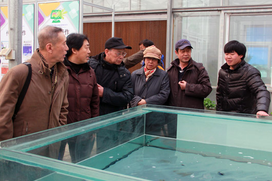 学生讲解员首先为前来参观的老师们介绍了大厅展板上所展示的我学院教师在科研、教学方面取得的成绩以及发表的论文、出版的书籍等。接下来,讲解员带领老师们来到温暖的智能温室,温室中绿意盎然,空气清新,美丽的绿植墙和智能高密度养鱼系统等现代农业设施立刻吸引了大家的注意。学生讲解员认真耐心的为老师们一一讲解和展示着现代智能温室的控制系统、潮汐灌溉技术、智能高密度养鱼系统等。
