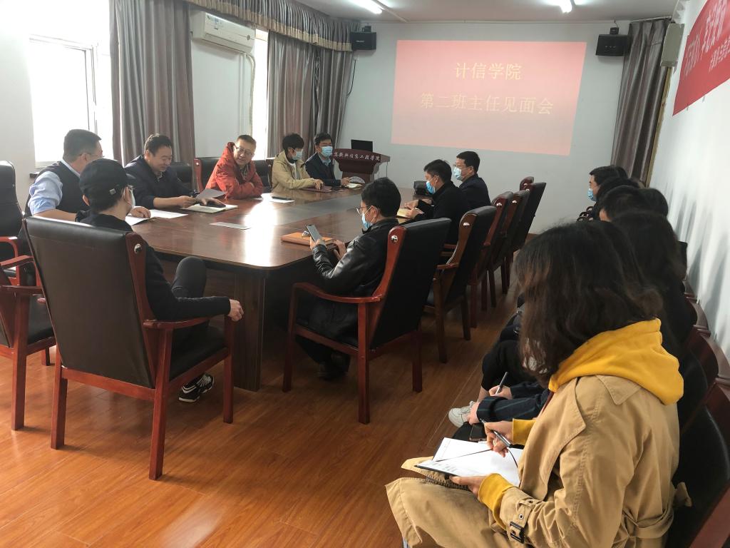 院长徐践首先对担任计信学院第二班主任的各位职能部门处级领导表示热烈欢迎。他高度认同第二班主任制度的实施的目的和意义,要求学院第一班主任尽快与第二班主任对接,主动汇报本班情况,使第二班主任尽快熟悉了解学生情况。今后工作中要重点关注学生安全、心理等思想政治工作,有特色的开展班级管理工作。