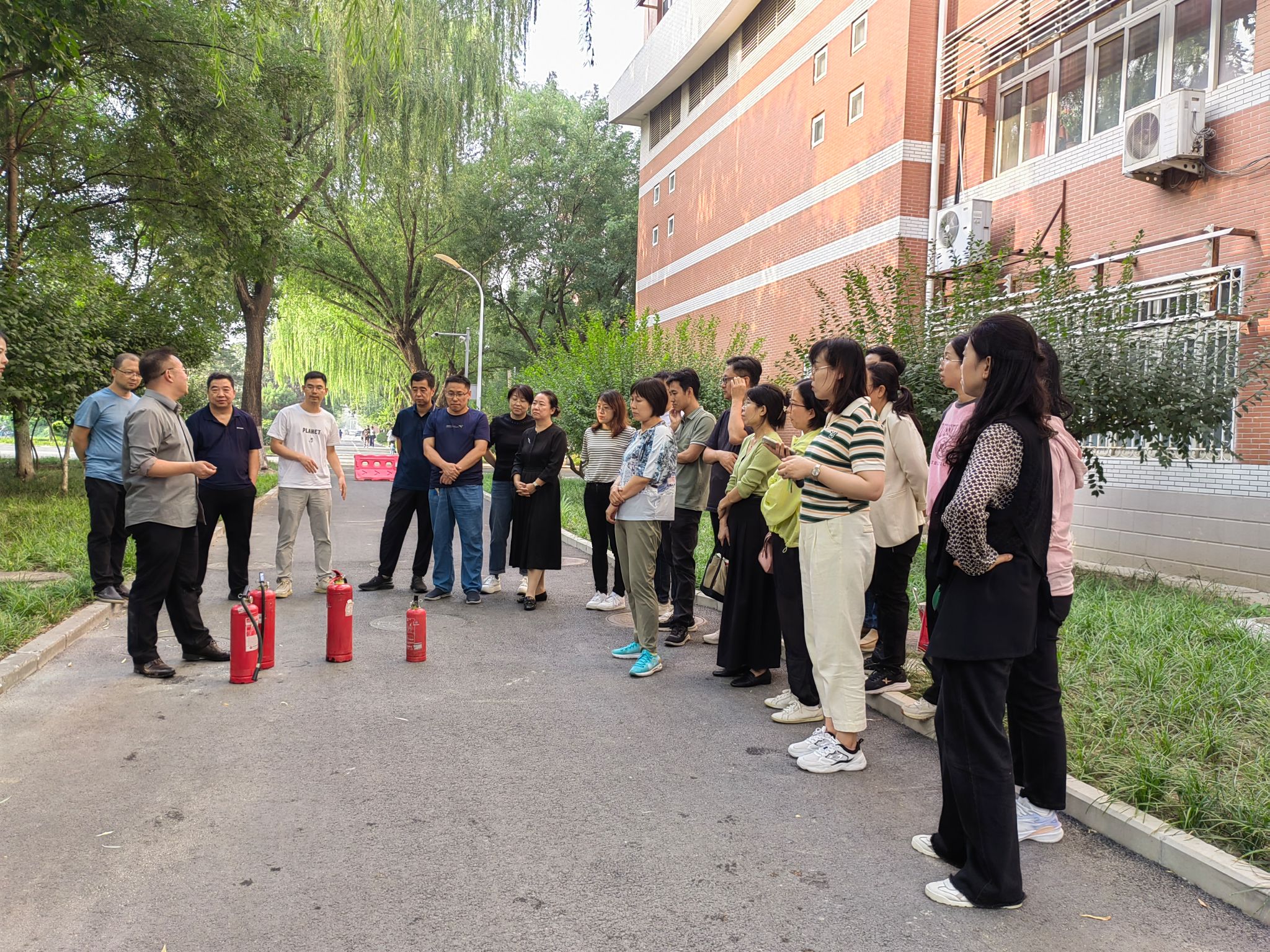 为提高学院教工消防安全技能,按照北京市教工委和学校安全稳定处工作安排,2023年9月26日,学院组织教工参加了一警六员考核,通过视频学习和安全稳定处消防科负责人的讲解,老师们基本掌握了灭火器和消火栓的使用操作,参加考核的教师都顺利通过了两项考核,通过本次“出真水、灭真火”的实操考核,学院教工消防安全意识和技能都得到了一定的提高。