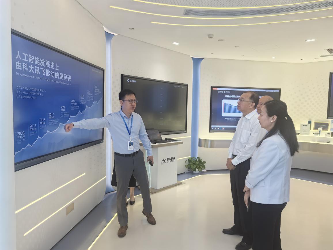 座谈会前,在总经理朱鹏的带领下参观了科大讯飞人工智能体验中心,深入了解科大讯飞在人工智能领域的前沿技术与产品应用。